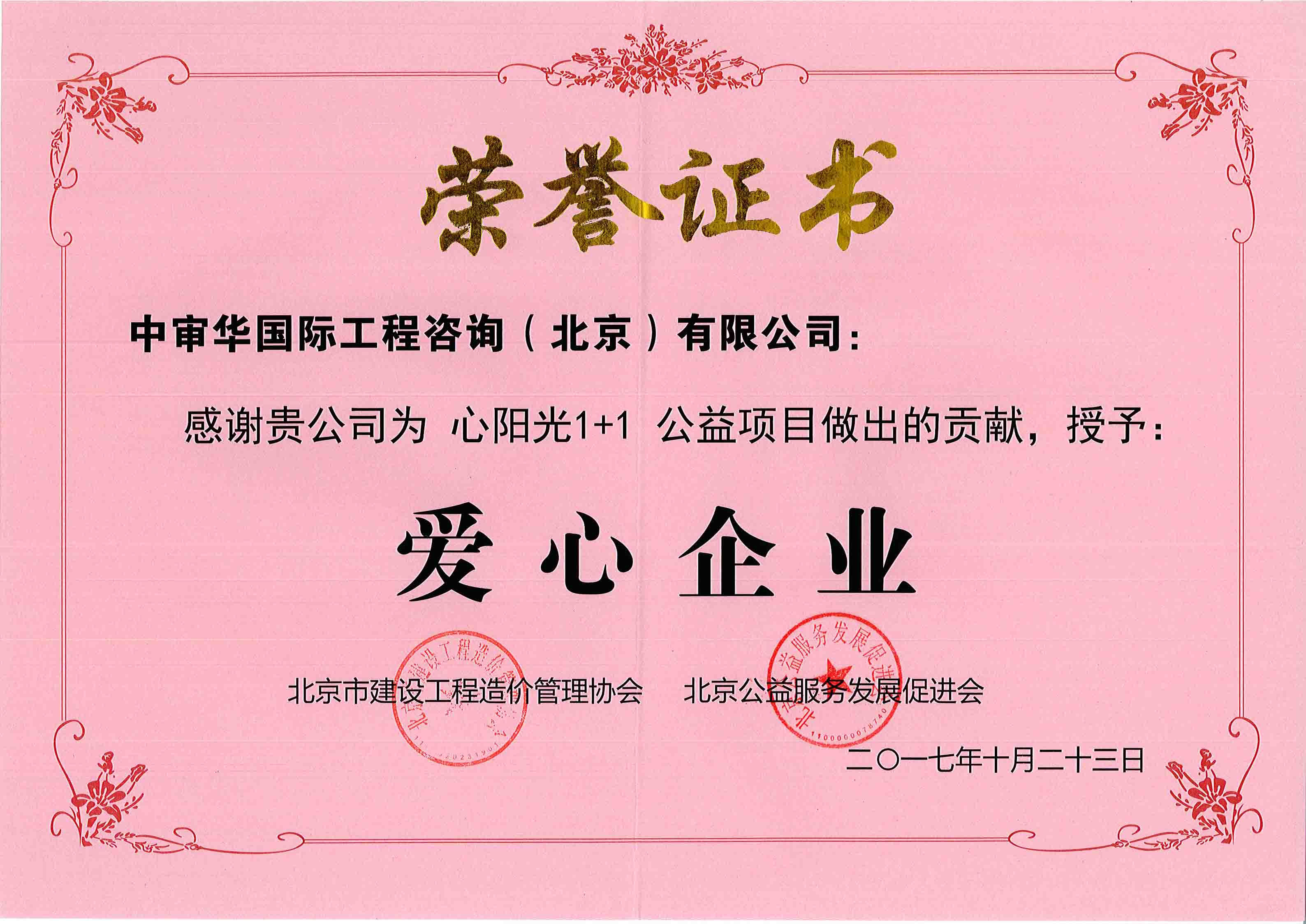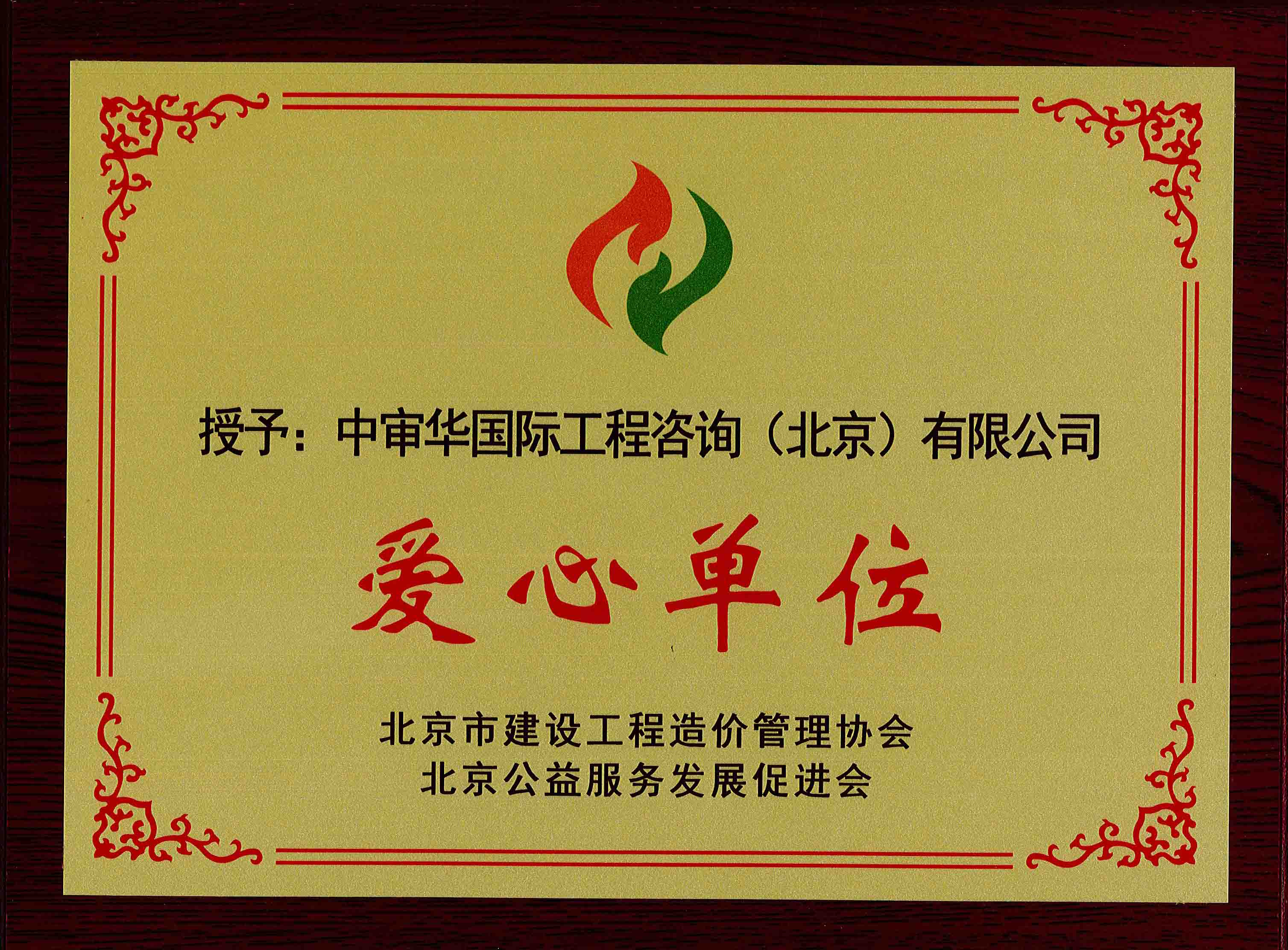 中審華國際工程咨詢(xún)(北京)有限公司獲北京市建設工程造價(jià)管理協(xié)會(huì )舉辦的“牽手京價(jià)協(xié),愛(ài)在心陽(yáng)光”公益項目中“愛(ài)心單位”。